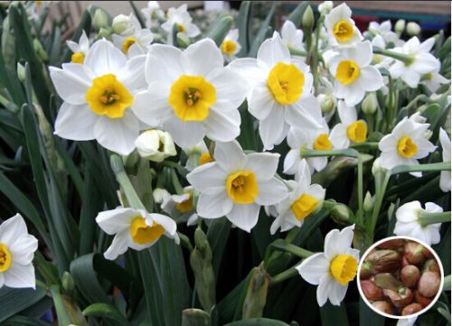 水仙鳞茎多液汁,有毒,含有石蒜碱、多花水仙碱等多种生物碱;外科用作镇痛剂;鳞茎捣烂敷治痈肿。牛羊误食鳞茎,立即出现痉挛、瞳孔放大、暴泻等。